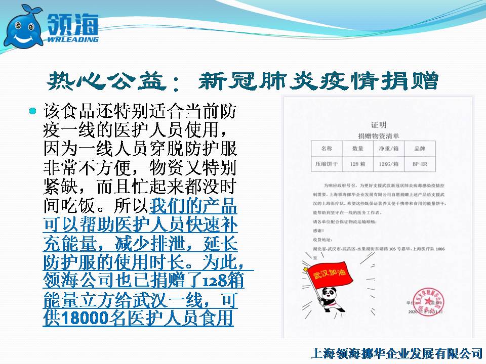 馳援武漢! 上海領海挪華捐贈可供18000名醫(yī)生食用的壓縮餅干